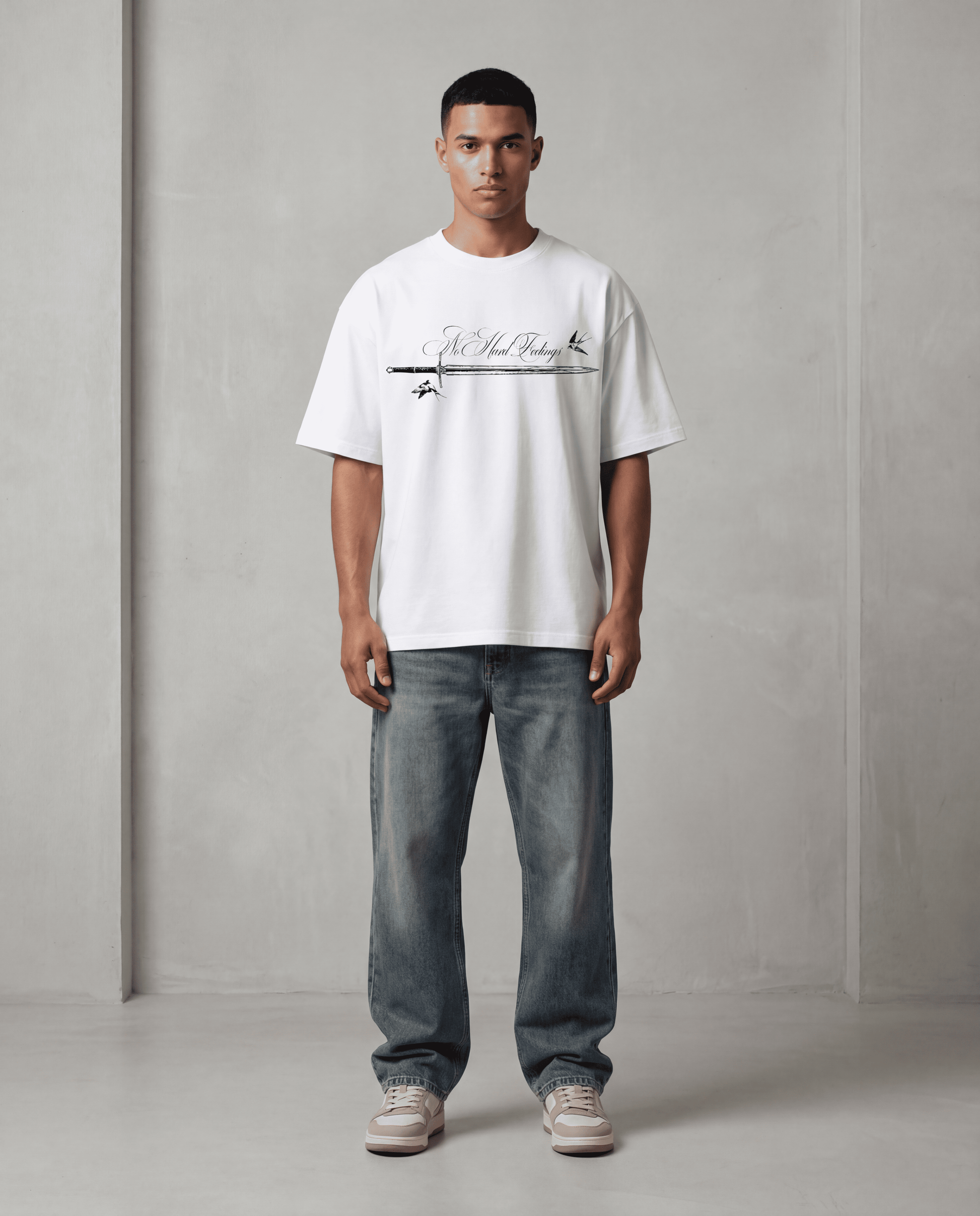Designed to be worn as an oversized/very loose fit, we recommend sizing down for a regular fit.